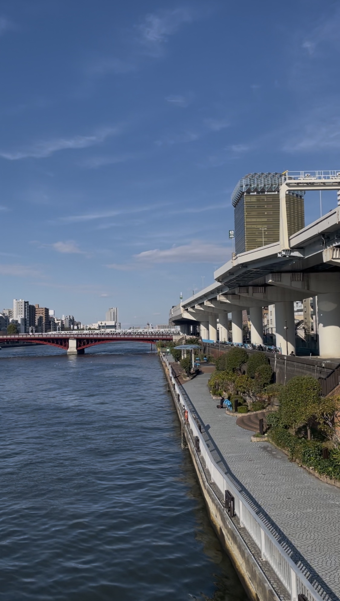 隅田川:浅草寺旁边的台东隅田公园是天气好的时候绝佳的散步地,景色开阔而疏朗,可以看到旁边的天空树。